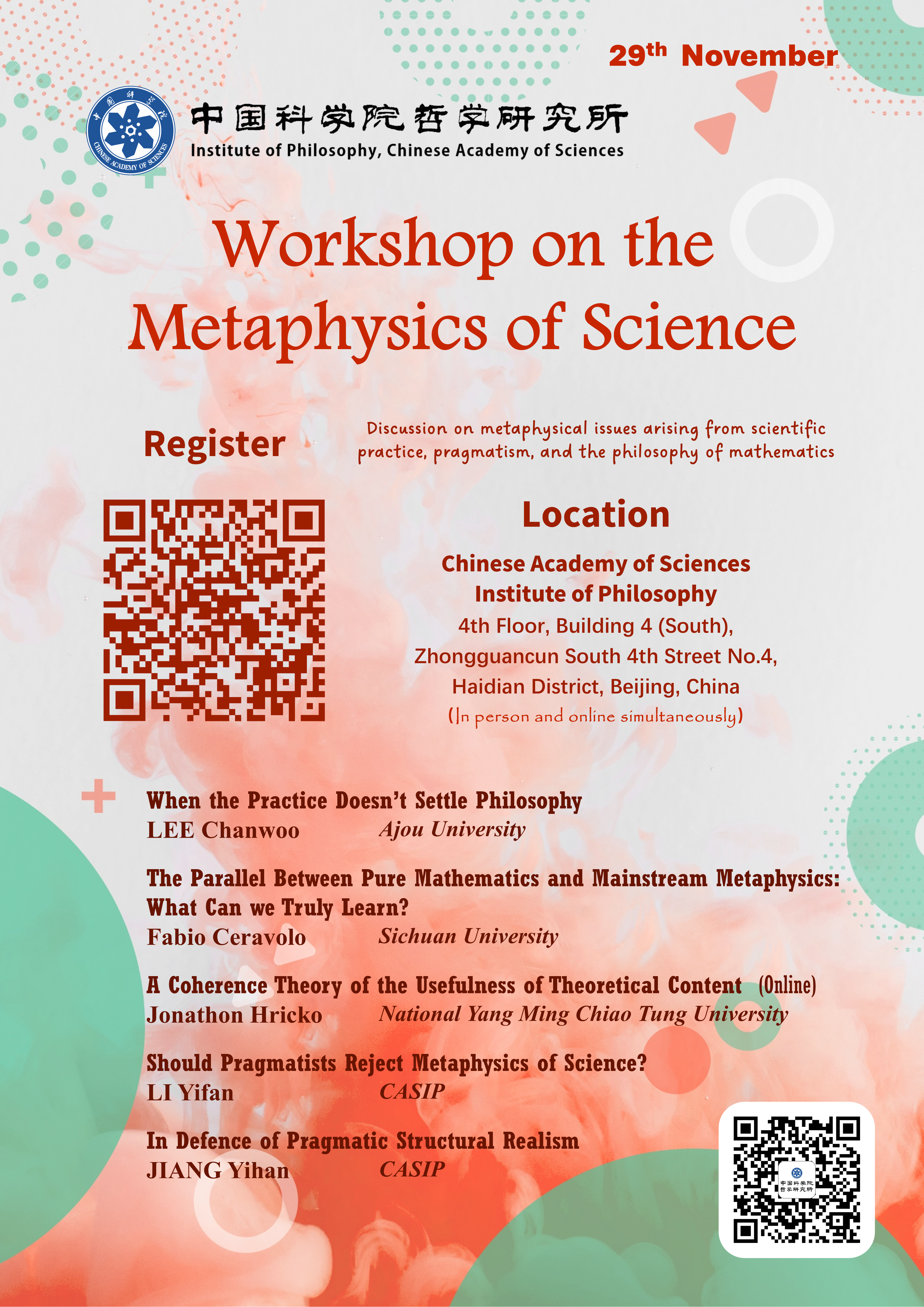The metaphysics of science has received increasing scholarly attention in recent years, especially with the promotion of the field by the Society for the Metaphysics of Science (SMS). To foster international academic exchange in the field, particularly in East Asia, a workshop on the metaphysics of science will be held at the Institute of Philosophy, Chinese Academy of Sciences, on 29th November.